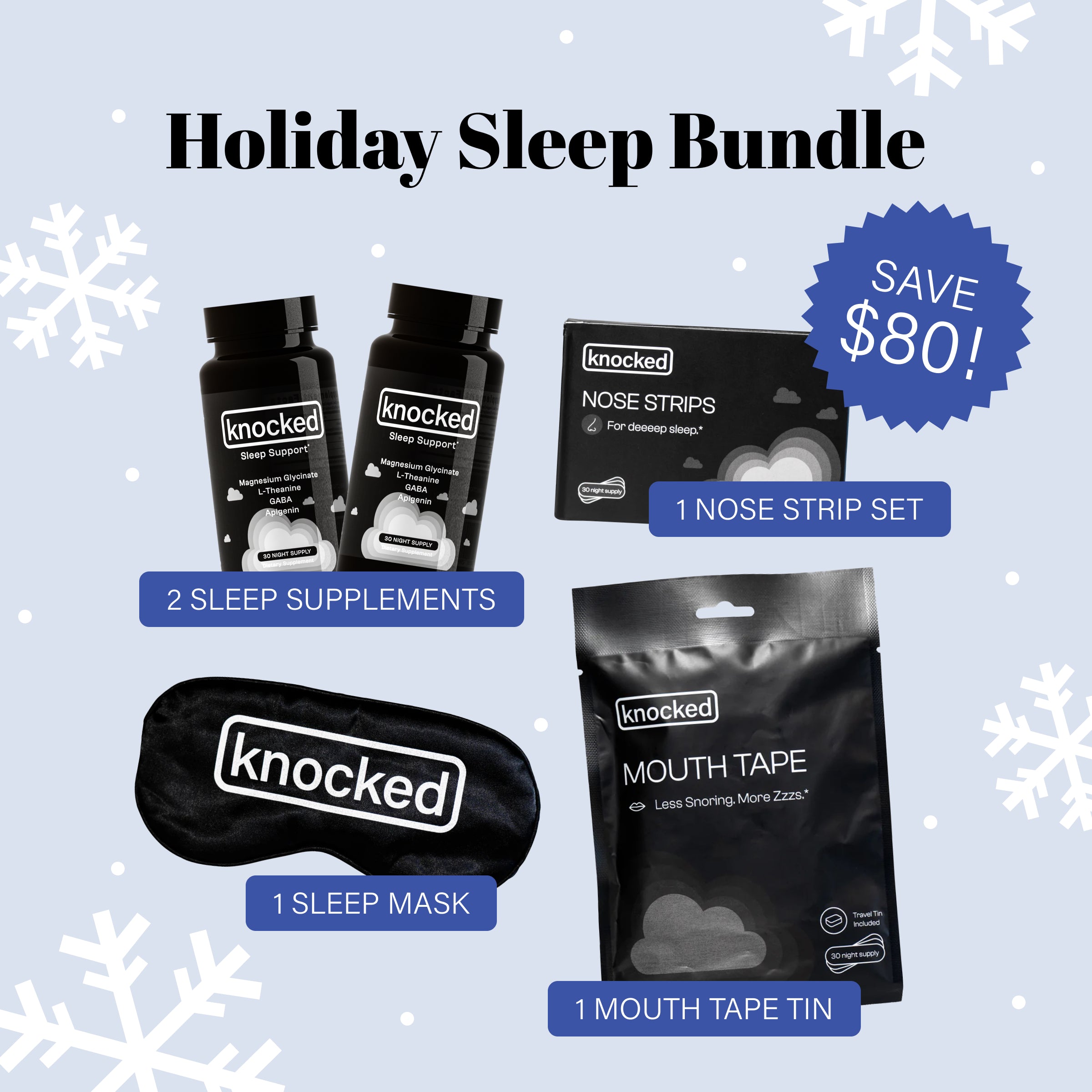 Yes! If you find you are enjoying the benefits of Knocked after trying our holiday bundle, you can subscribe and save to our supplements, mouth tape and nose strips!
